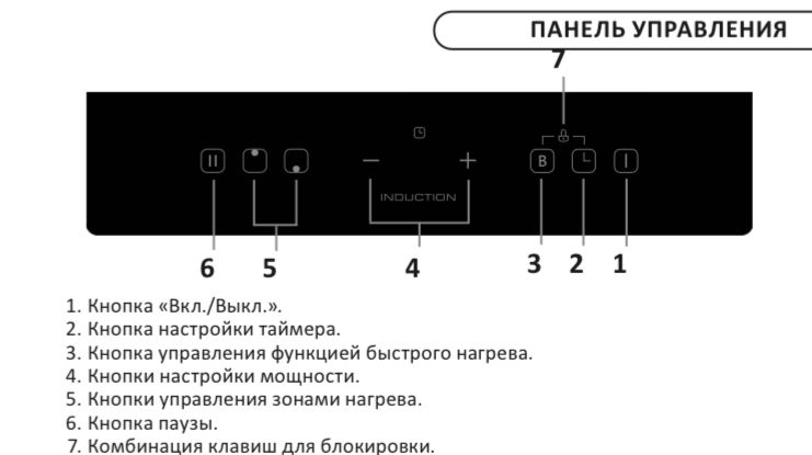 Обращаем внимание — плита индукционная, работает при условии, что на плите стоит посуда с подготовленной пищей для готовки.